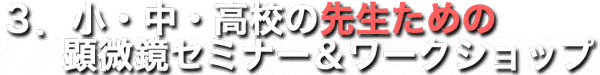 顕微鏡の歴史や、電子顕微鏡の試料づくりなど、授業のネタになる様なお話をふくめた「解説」と
